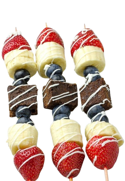 Brochetas frescas y divertidas con un mix de sabores naturales: fresas, plátano, arándanos y trozos de brownie. Cada bocado ofrece una combinación de dulzura natural de las frutas con la suavidad y el sabor intenso del brownie. Decoradas con un toque yogurt griego, estas brochetas son una opción perfecta para disfrutar de una merienda saludable y colorida. Ideales para compartir en eventos o como un snack dulce sin remordimientos.